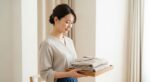 タオルの両端を持ち、頭上で腕を伸ばしてからゆっくり背中側に下ろす。肩甲骨を寄せる動きが自然と生まれます。